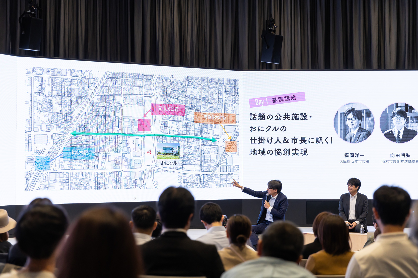 CONFERENCE 2024 REPORT「地方創生」や「地域課題解決」、「官民共創」という言葉に、もっと手触りを持つために。大阪府茨木市発、注目の子育て・文化拠点「おにクル」ができるまでを市長と担当課長が語る基調講演、地域課題の「課題設定」に着目したメイン展示の様子などを一挙にまとめてお伝えします。